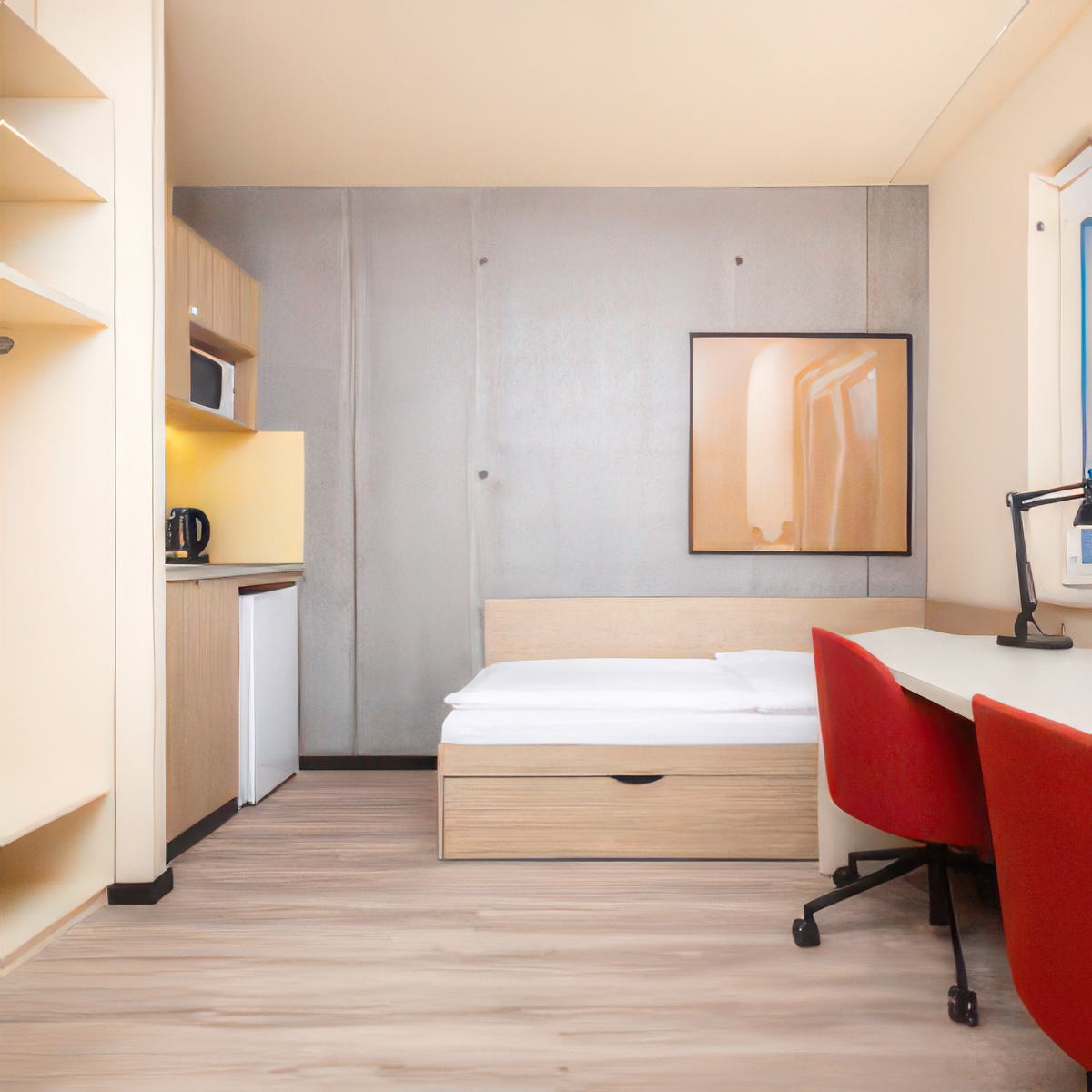 Studiowanie we dwoje to wyjątkowe doświadczenie, które wymaga odpowiedniego miejsca do życia. Nasze Studio dla Par to starannie zaprojektowana przestrzeń 21m², gdzie funkcjonalność łączy się z komfortem, tworząc idealne warunki do codziennego życia i nauki podczas studiów.