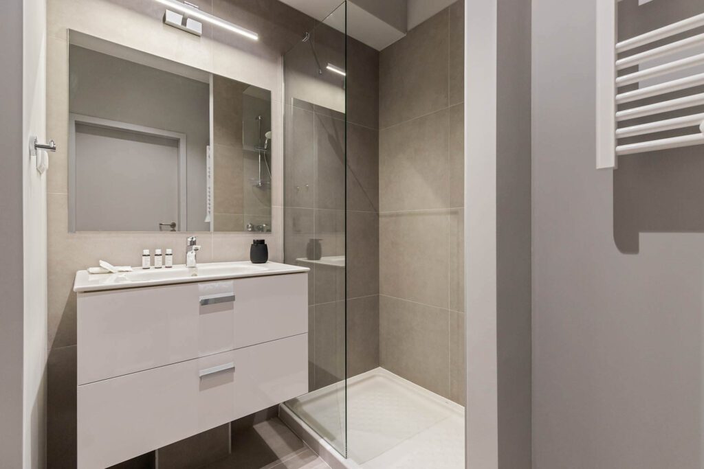 W Studiu Jednoosobowym Standard masz luksus własnej łazienki. Przestronny prysznic, nowoczesna armatura i przemyślana organizacja przestrzeni zapewniają maksimum komfortu podczas codziennych rytuałów. Zapomnij o kolejkach do wspólnej łazienki czy dzieleniu przestrzeni z innymi – tutaj Twoja prywatność jest priorytetem.