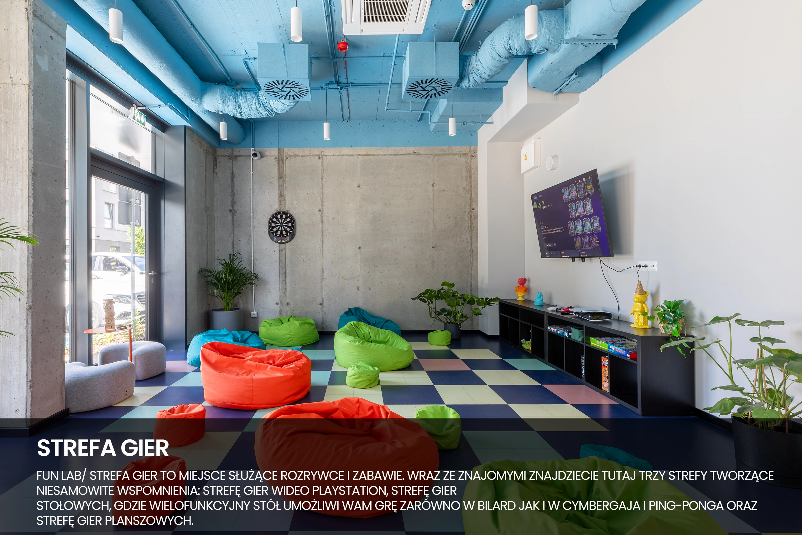 Розважальна лабораторія/Ігрова зона – це місце для розваг та веселощів. Разом з друзями ви знайдете тут три зони, які створять неймовірні спогади: зона відеоігор PlayStation, ігрова зона настільні ігри, де багатофункціональний стіл дозволить вам пограти в більярд, аерохокей та пінг-понг, а також зона настільних ігор.